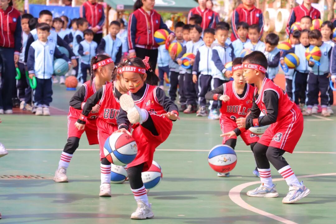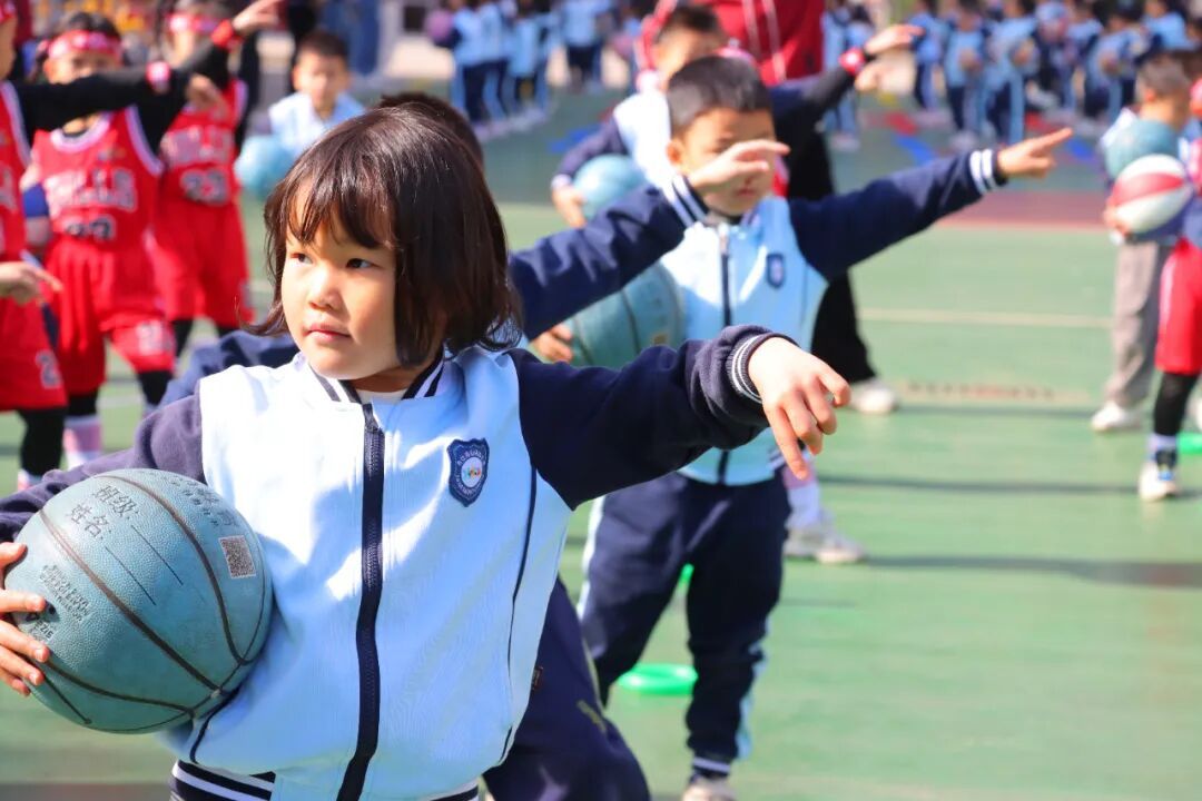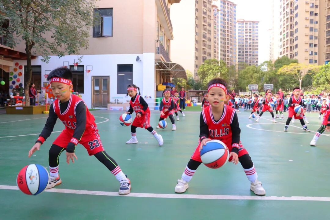 一颗小小的篮球,盛满了孩子们的无限热情;一份滚烫的热爱,让童真在跃动中尽情绽放。幼儿园篮球社团的小将们身着亮眼红装,头戴主题头带闪亮登场,拍球、运球动作利落干脆,稚气未脱的姿态里,藏着对篮球最纯粹的热爱。
