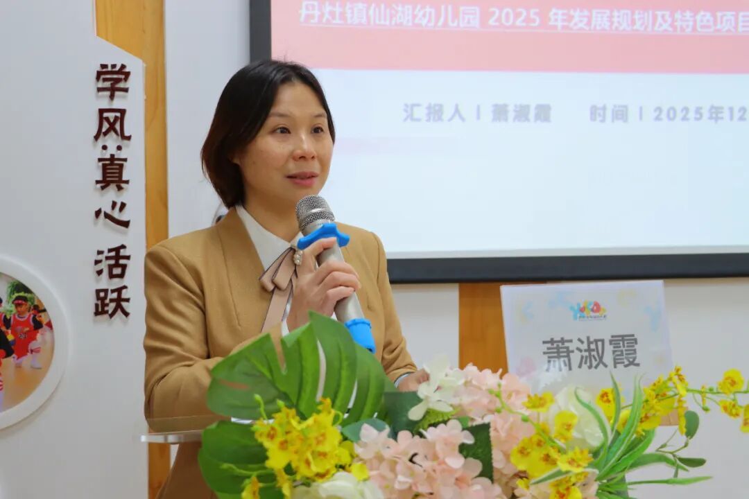 萧淑霞园长以《爱心育湖润童心,聚力提质促发展》为主题,从理念深化、课程建设、队伍赋能、协同育人、保障筑牢、特色塑造、集团化办学七大维度,全面细致地汇报了我园2025年发展规划及特色项目的年度实施成效与推进情况。