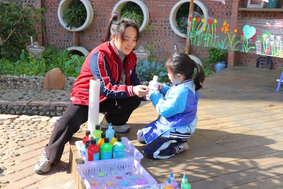 转角走进 “童绘绿境・创响未来” 区域,色彩斑斓的生态主题绘画旁,是孩子们用积木搭建的科创作品,通过编程指令的巧妙设定,积木组件或闪烁起灵动灯光,或运转起精巧机关,科学奇思跃然眼前,尽显孩子们对自然与科技的独特感知。