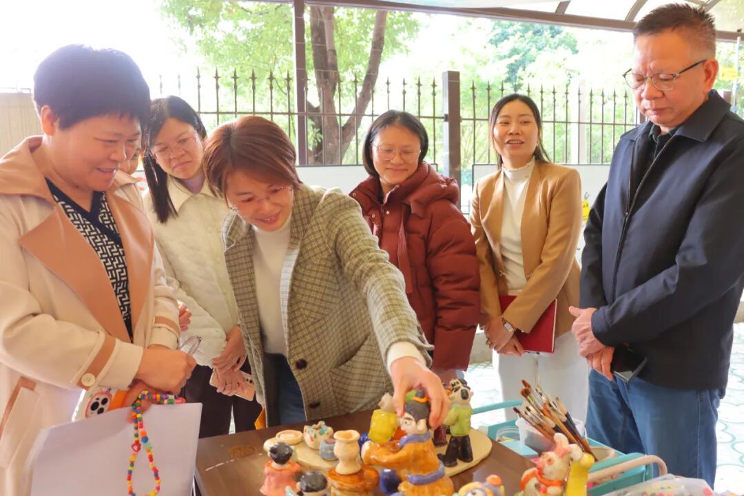 检查组一行在园领导的陪同下率先来到陶艺长廊,孩子们用陶泥塑造的仙湖生态景观栩栩如生,古朴的陶色与灵动的创作构思相得益彰。