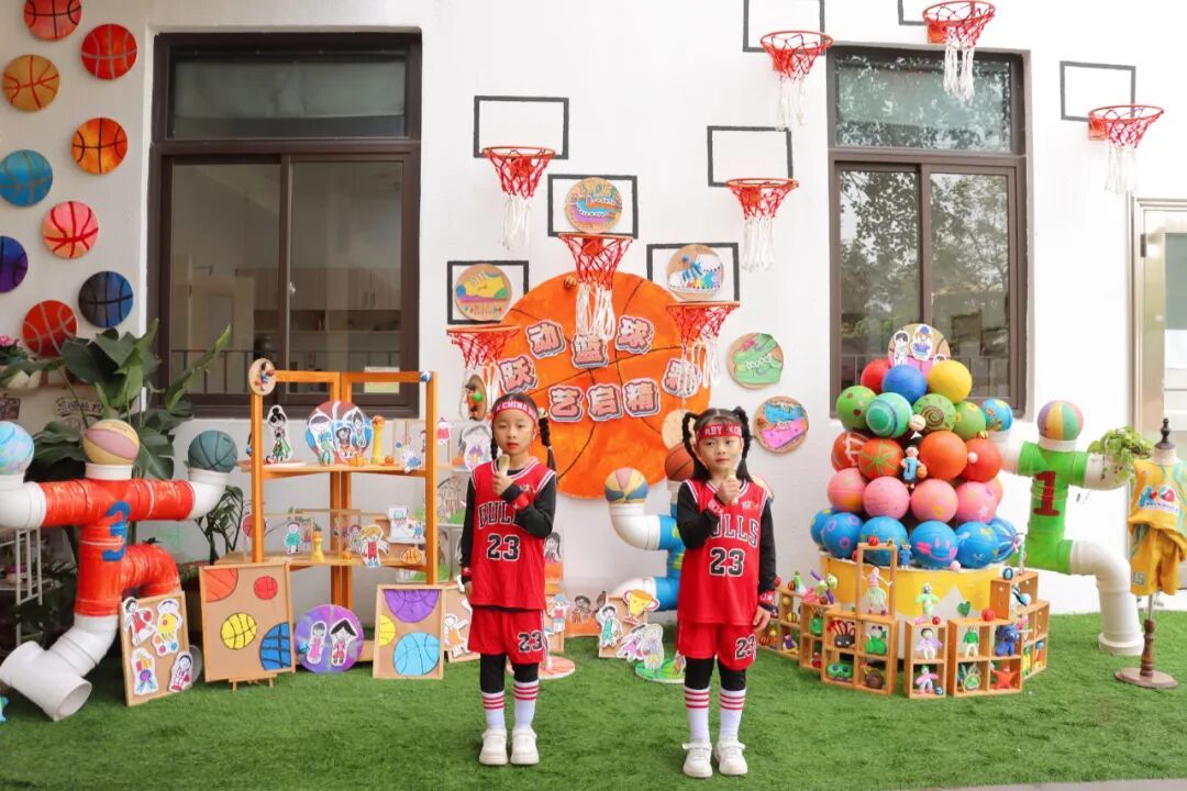 最后踏入“跃动篮球・艺启精彩”区域,手绘篮球漫画、管道拼搭的迷你球架、绳编篮球挂饰鲜活又热烈,运动的活力与艺术的巧思在此交融,把“跃动成长”的氛围拉满。